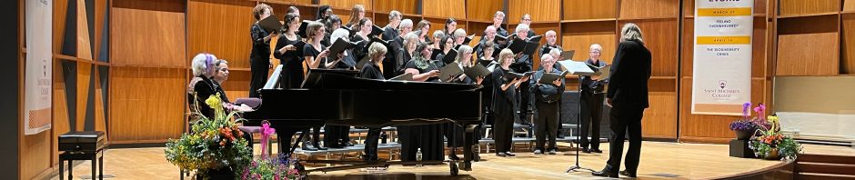 Many thanks to our Director, Erik Kronke, and our Pianist, Mary Jane Austen for all that they do to shepherd us through the fun and challenging repetoire! Erik’s vision for the ceremonial elements were performed by some of our members and volunteers, to enhance the musical performance. We don’t know how Erik does it, but he continues to surprise us with rewarding programs that both challenge us and are super fun to perform! Mary Jane’s support is invaluable in helping us bring Erik’s expectations to fruition.